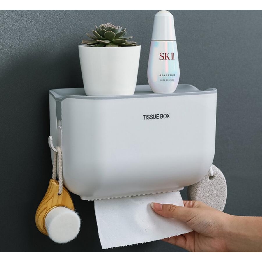 Hộp đựng giấy vệ sinh TISSUE BOX tiện dụng chống nước, hộp đựng giấy vệ sinh dán tường kèm kệ để đồ thông minh
