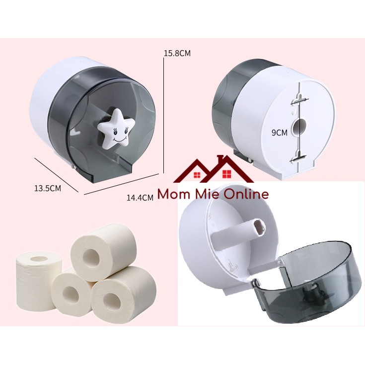 - Thiết kệ hộp kín nước, bạn sẽ không phải bực mình khi giấy vệ sinh bị dính nước và ẩm ướt. Mở nắp hộp rất đơn giản bằng cách xoay núm vặn hình sao biển ở mặt trước.