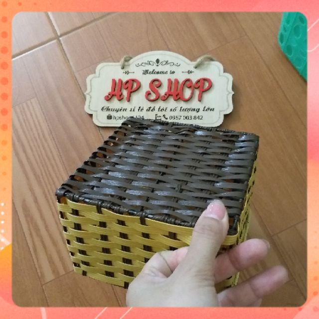 Hộp đựng giấy ăn giả mây- Kích thước: 12 x 12 x 10 cm. ( dài x rộng x cao)