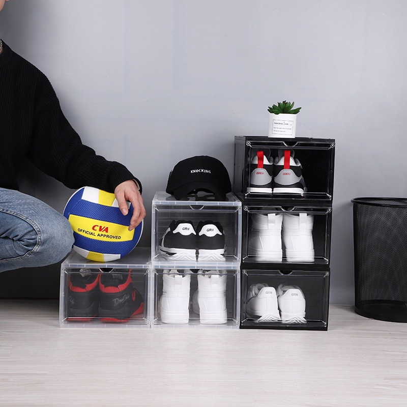 Giới thiệu Hộp Đựng Giày Xịn Trong Suốt Lắp Ghép Thông Minh Nhựa Cứng Nắp Nam Châm -Tặng Hút Ẩm
