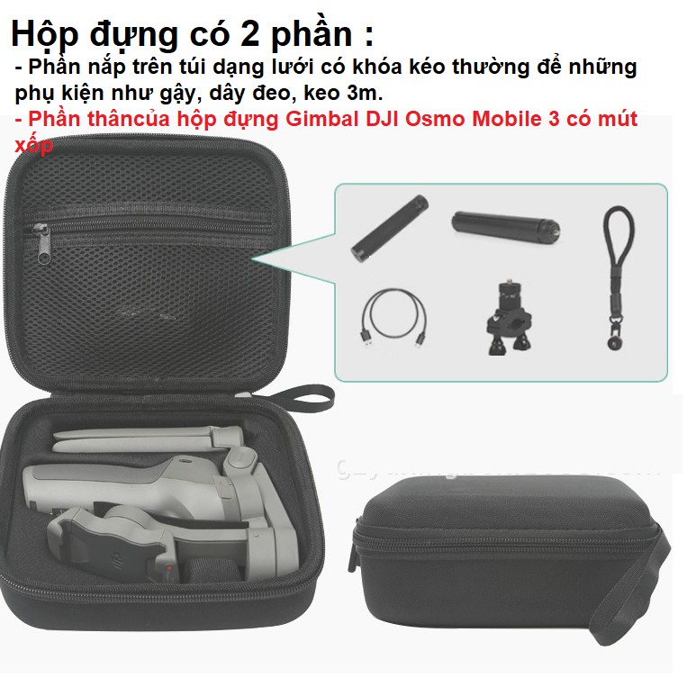 + Phần thân chính của hộp đặt vừa khít 1 Gimbal DJI Osmo Mobile 3.