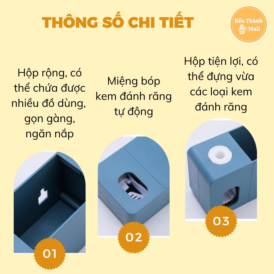 - Tên sản phẩm: Hộp đựng kem đánh răng, Bộ nhả kem đánh răng tự động, kệ để đồ phòng tắm tiện lợi