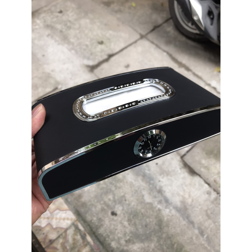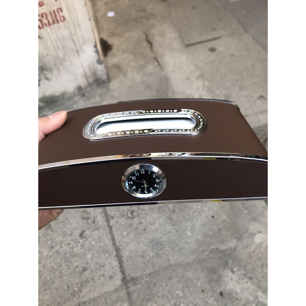 Hộp đựng khăn giấy Luxury đẳng cấp 3 trong 1Hộp Khăn Giấy Luxury là sản phẩm nội thất thiết thực, vừa nhỏ gọn tiện dụng, đồng thời làm tăng vẻ sang trọng cho không gian ô tô của bạn. Sản phẩm giúp để khăn giấy trên xe gọn gàng và không bị bụi bẩn. Hộp Khăn Giấy Luxury được làm từ nhựa cao cấp, bọc bằng da PU cao cấp chống xước, chống nước, dễ dàng vệ sinh. Sản phẩm tích hợp đồng hồ, vừa xem được giờ, vừa tạo nên vẻ lịch lãm và quý phái cho xế cưng của bạn, đồng thời kèm theo bảng số điện thoại vô cùng tiện dụng.