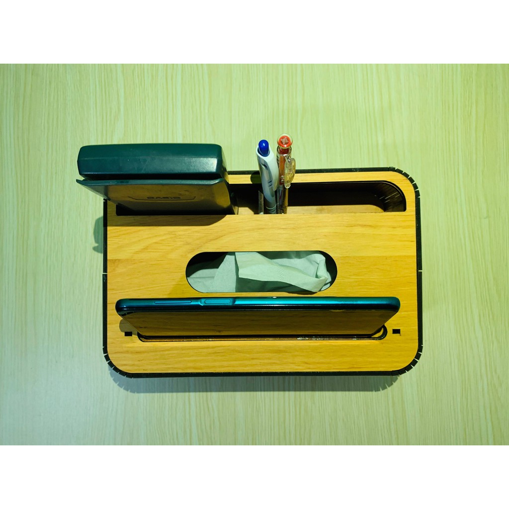 Giới thiệu Hộp Đựng Khăn Giấy Ăn Bằng Gỗ Có Khe Đỡ Điện Thoại, Cắm Bút