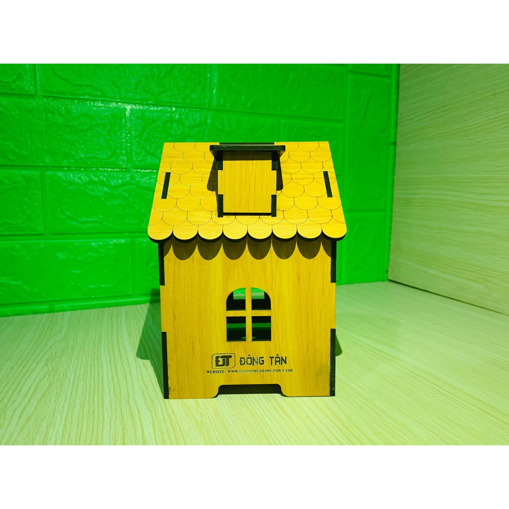Giới thiệu Hộp Đựng Khăn Giấy Ăn Bằng Gỗ Hình Ngôi Nhà Ống Khói, Tặng Kèm Ống Tăm Gỗ