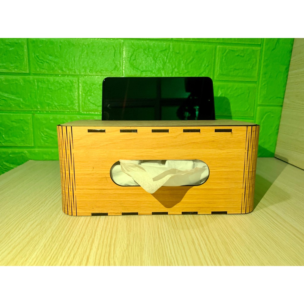 Giới thiệu Hộp Đựng Khăn Giấy Ăn Bằng Gỗ Có Khe Đỡ Điện Thoại, Rút Giấy Ngang