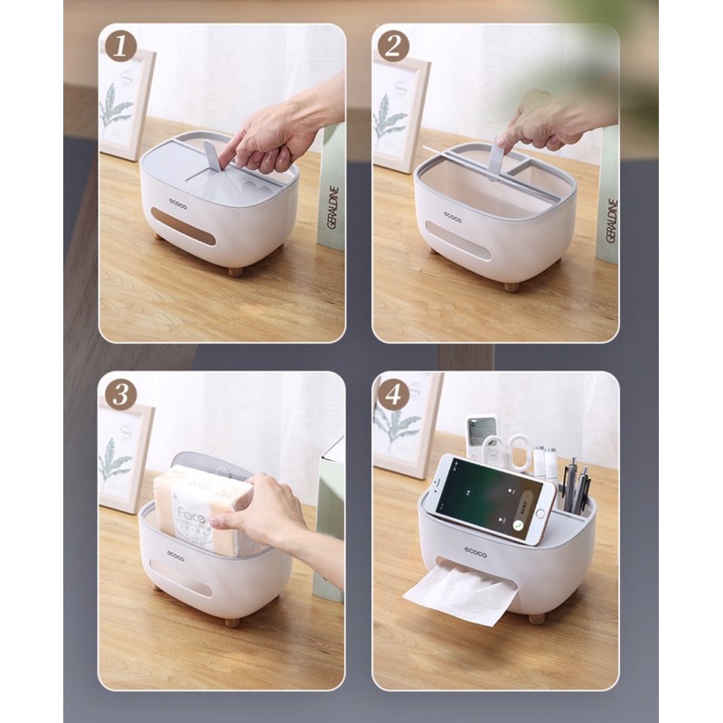 Giới thiệu Hộp Đựng Khăn Giấy Ăn Đa Năng Ecoco Có Giá Đỡ Điện Thoại Sang Trọng - PHARAON