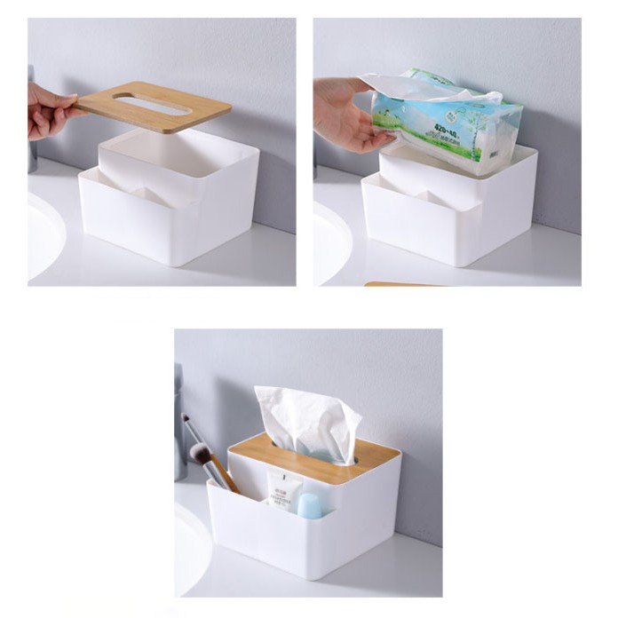 THÔNG TIN SẢN PHẨM: Hộp Đựng Khăn Giấy Ăn Đa Năng 2 Ngăn Nắp Gỗ Để Đồ Đặt Bàn Làm Việc Phòng Khách Phòng Ngủ :