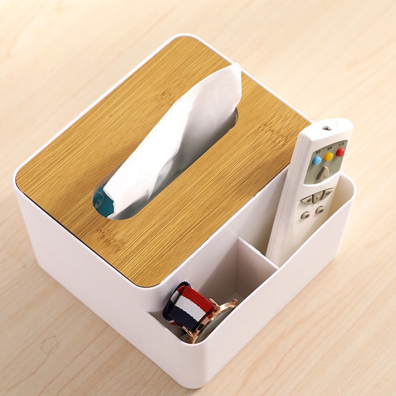 Hộp Đựng Khăn Giấy Ăn Đa Năng 2 Ngăn Nắp Gỗ Để Đồ Đặt Bàn Làm Việc Phòng Khách Phòng Ngủ
