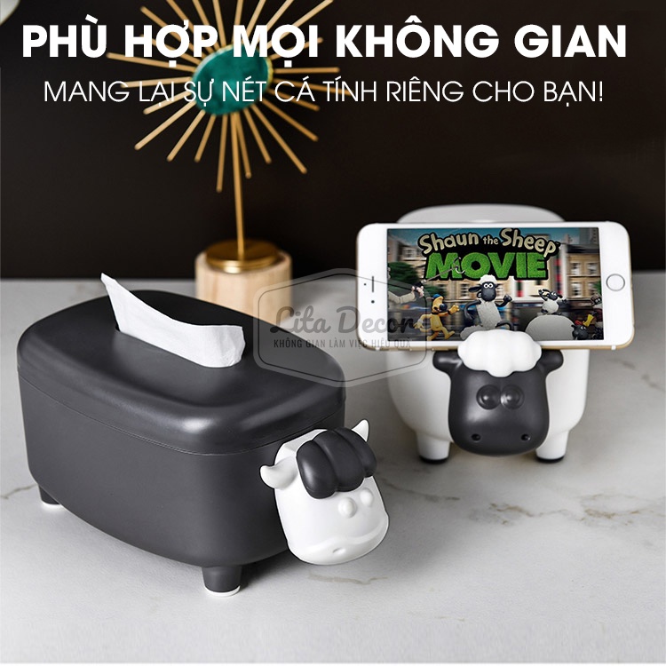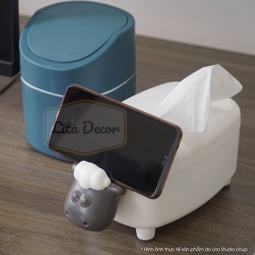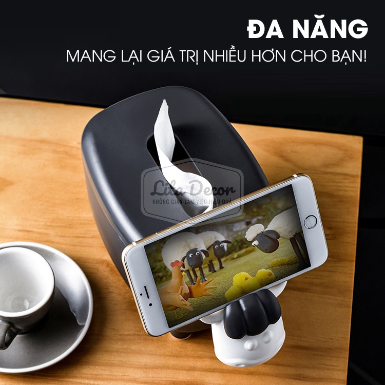 Hộp đựng khăn giấy ăn, hình con cừu kết hơp giá đỡ điện thoại & đồ trang trí, mã HG02
