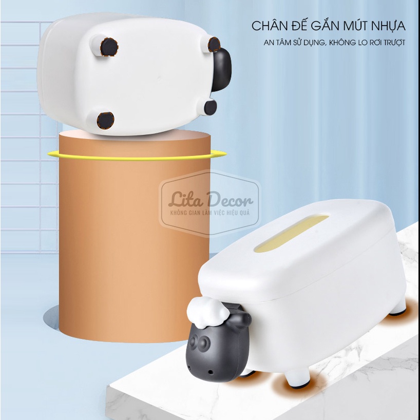 HỘP ĐỰNG KHĂN GIẤY ĂN, HÌNH CON CỪU KẾT HỢP GIÁ ĐỠ ĐIỆN THOẠI & ĐỒ TRANG TRÍ- Chất liệu: nhựa bóng cao cấp.