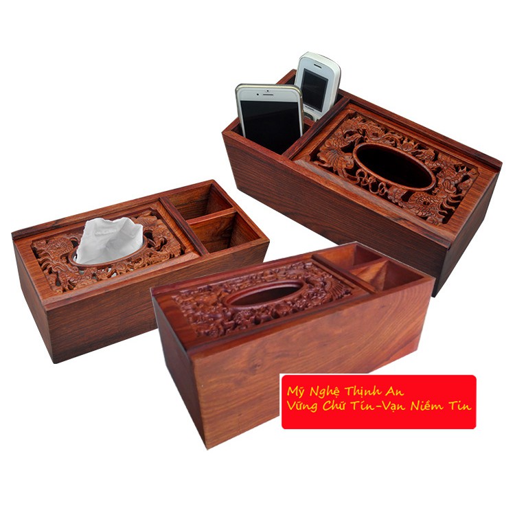 Hầu hết tất cả các gia đình đều sở hữu ít nhất một hộp đựng giấy ăn trong nhà. Nhưng gia chủ còn muốn đồ vật của mình sử dụng luôn phải thể hiện được nét cá tính, sự sang trong và gu thẩm mỹ của chính gia đình mình. Nếu bạn muốn tôn lên nét sang trọng, khả năng lựa chọn đồ dùng tinh tế, gu thẩm mỹ đặc biệt, lại đảm bảo an toàn cho sức khỏe thì chỉ một hộp đựng giấy ăn 3 ngăn bằng gỗ hương cao cấp loại a của chúng tôi là sự lựa chọn hoàn hảo.