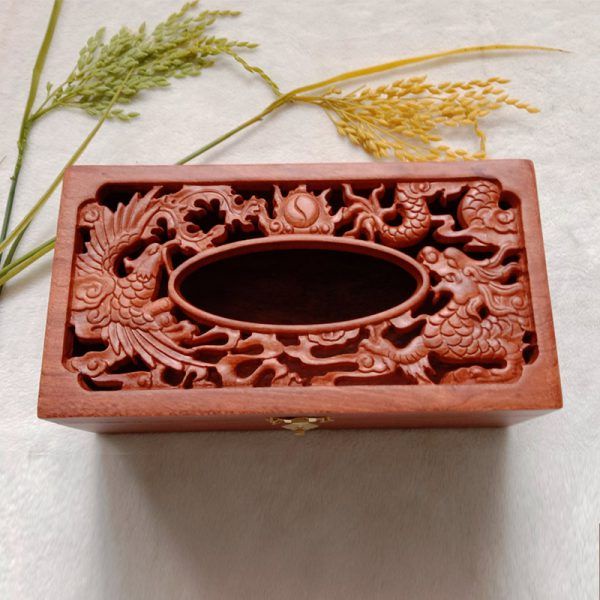 Giới thiệu Hộp đựng khăn giấy ăn ( khăn giấy) gỗ Hương Đình long phụng siêu sang cao cấp - Hàng xuất khẩu loai I