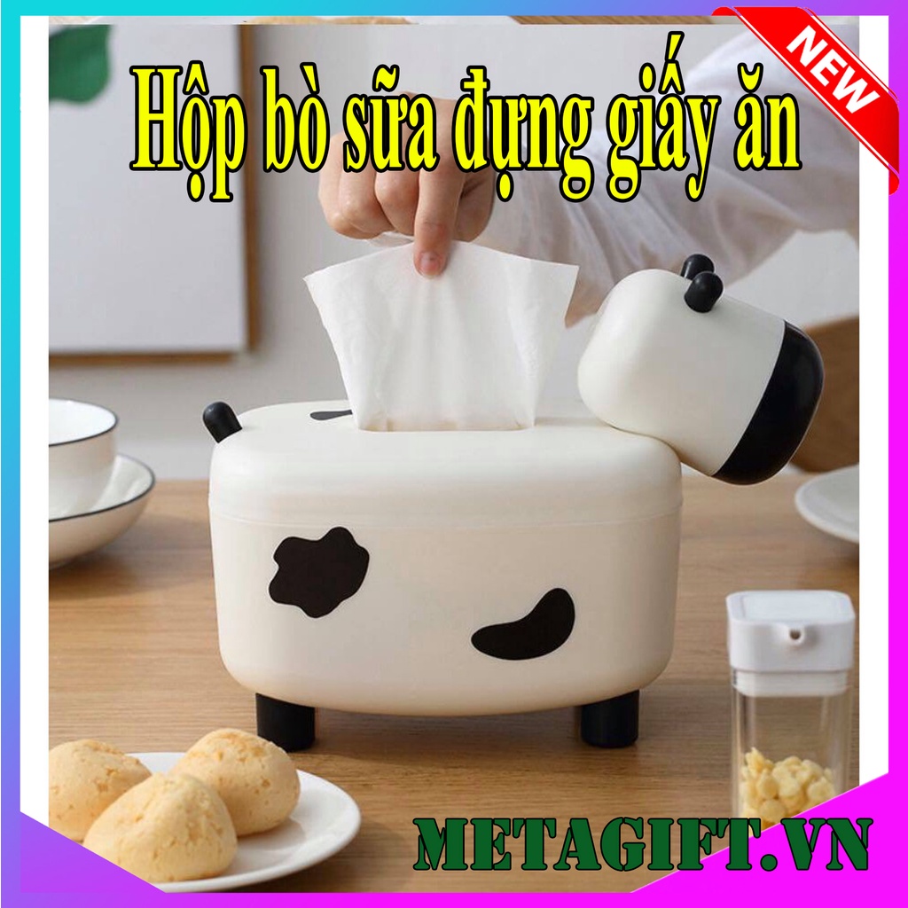 Hộp đựng khăn giấy ăn rút dễ thương bò sữa đẹp xinh đa năng để bàn bằng nhựa kèm lọ tăm tiện lợi