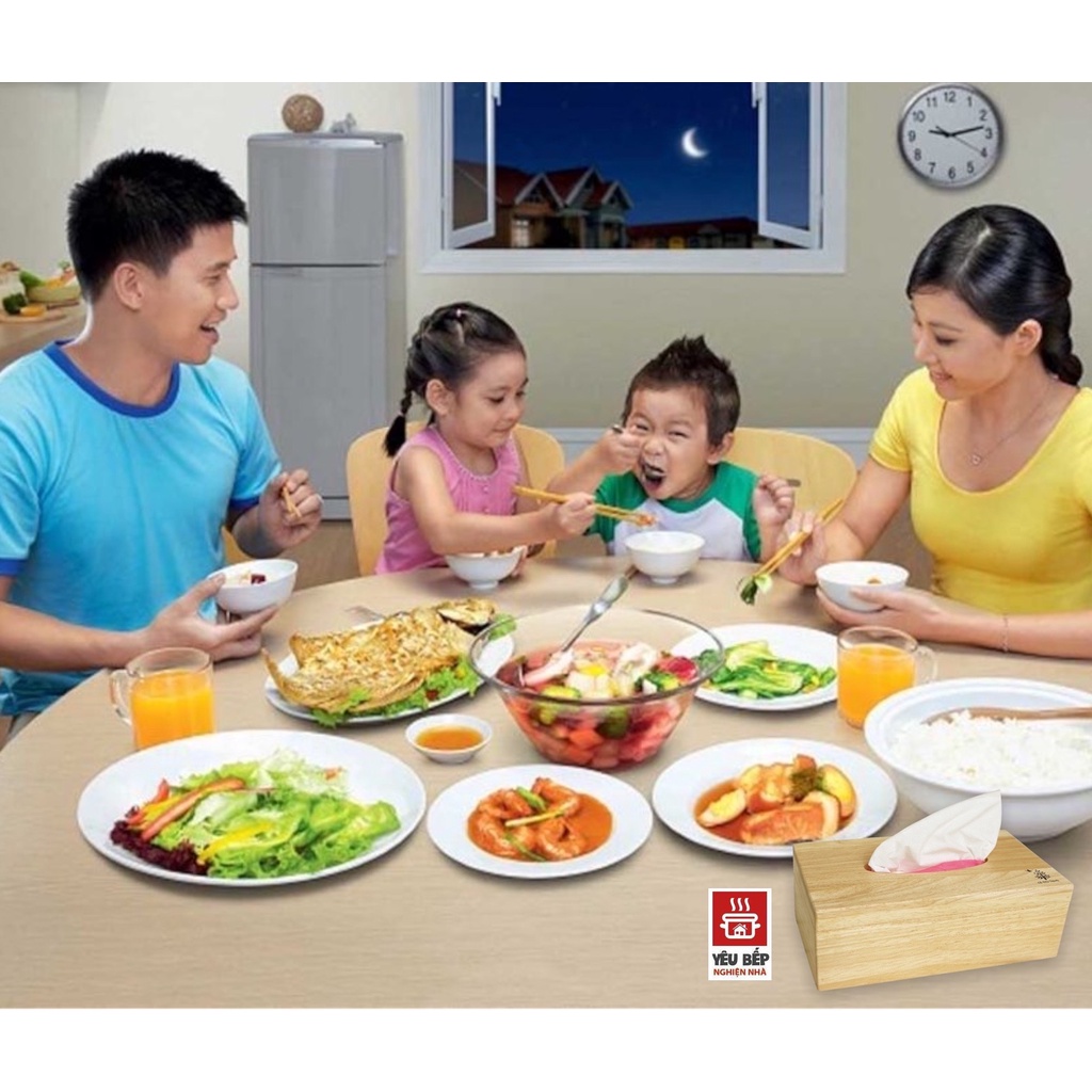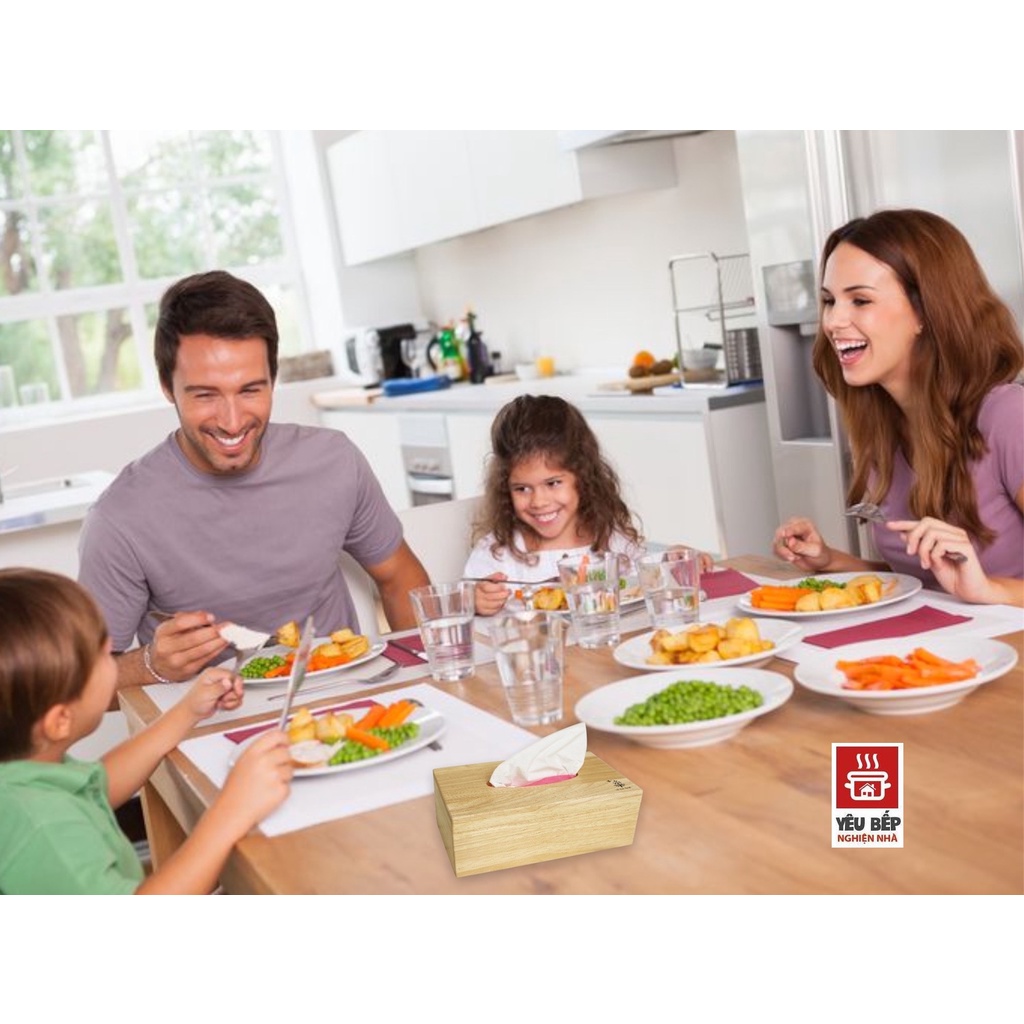 - Hộp đựng khăn giấy ăn được làm từ chất liệu gỗ cao su, giúp bảo quản giấy tốt, an toàn cho người sử dụng.