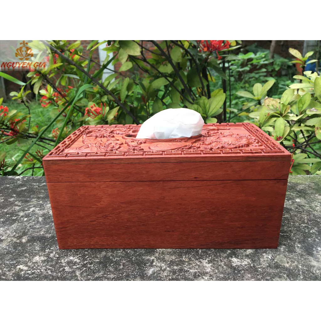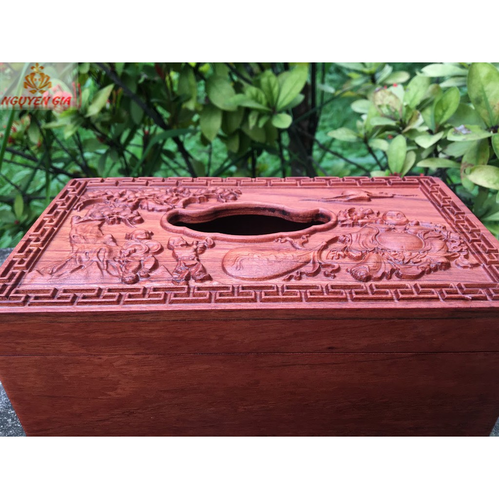 Hộp đựng khăn giấy bằng gỗ mẫu phật di lặc nhị phúc