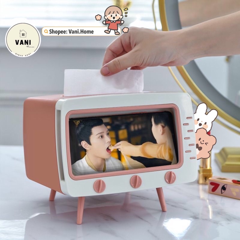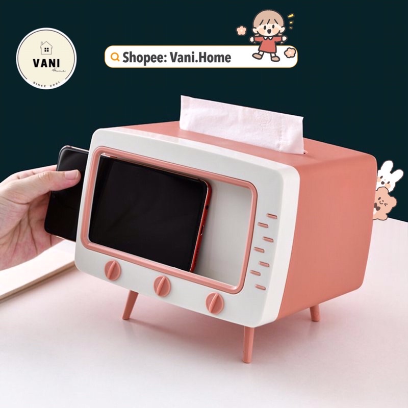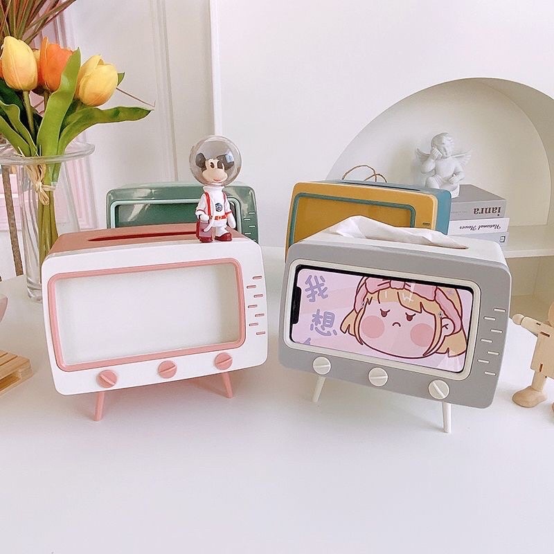 - Khay đựng giấy ăn ti vi để bàn, tích hợp cùng giá đỡ điện thoại giúp bạn thoải mái vừa xem phim vừa rảnh tay làm những công việc mình ưa thích