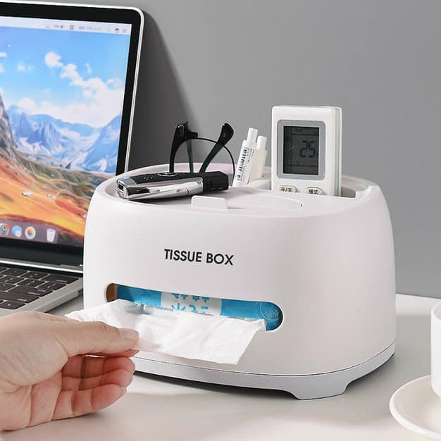 Hộp đựng khăn giấy để bàn đa năng TISSUE BOX Hộp đựng giấy ăn kiêm giá đỡ điện thoại, điều khển để bàn ngăn nắp tiện lợi