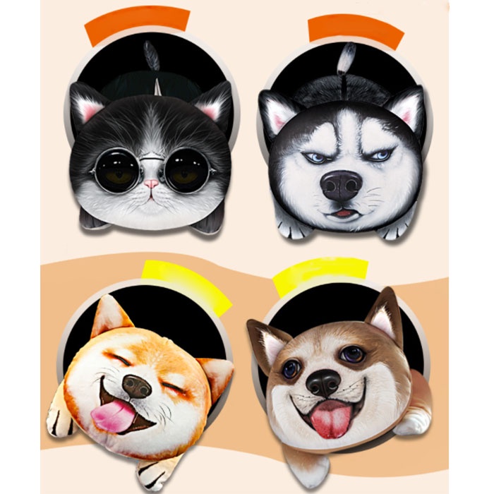 -Hình dáng: siêu dễ thương với hình chó husky, shiba, chó akita, mèo đeo kính ,mèo mắt to...