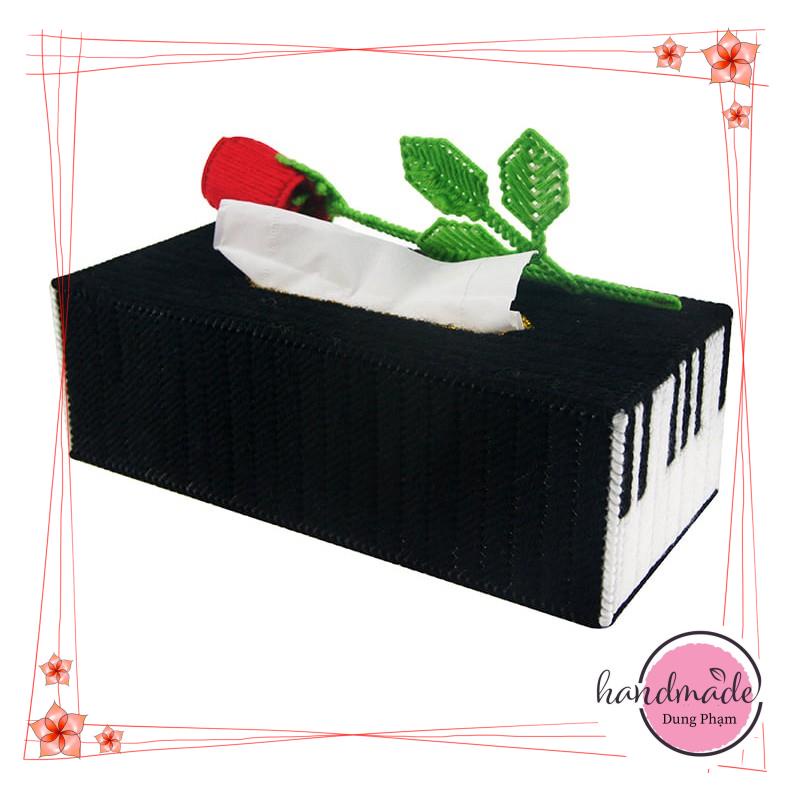 Hộp đựng khăn giấy để bàn - mẫu phím đàn và cành hồng