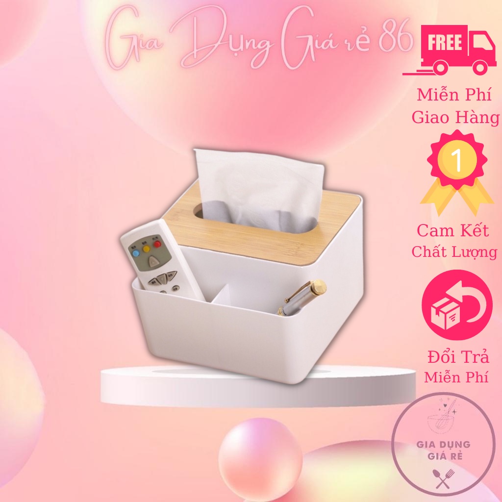 Nhà cửa & Đời sống > Sắp xếp nhà cửa > Hộp khăn giấy || Hộp đựng khăn giấy để bàn nắp gỗ kèm 2 ngăn đựng đồ Remote điều khiển tivi bút viết sang trọng đa năngCòn hàng