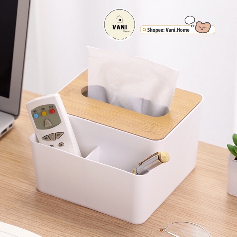 Nhà cửa & Đời sống > Sắp xếp nhà cửa > Hộp khăn giấy || Hộp đựng khăn giấy để bàn nắp gỗ kèm 2 ngăn đựng đồ, Remote, điều khiển tivi, bút viết sang trọng đa năngCòn hàng