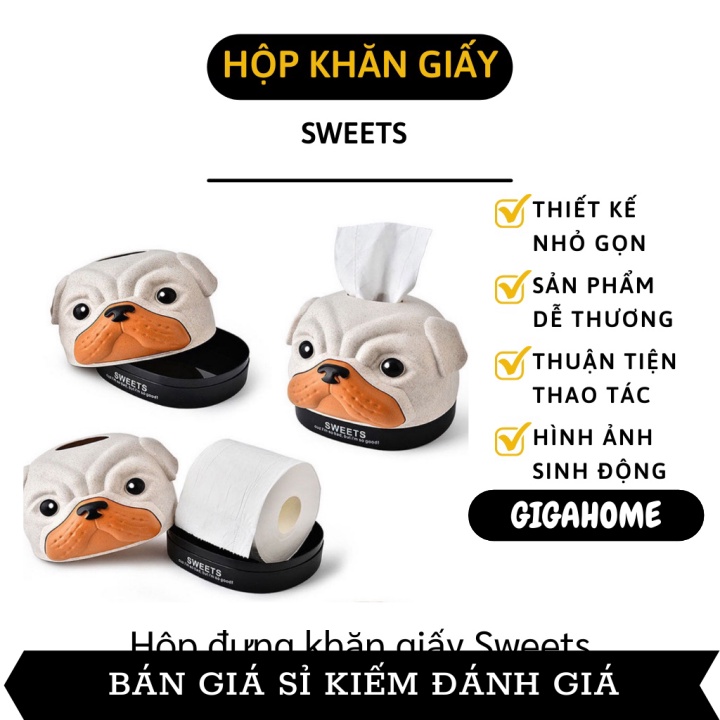 Hộp Đựng Khăn Giấy Dễ Thương GIGAHOME Hộp Khăn Giấy Để Bàn Hình Chó Mặt Xệ Sweets 9870