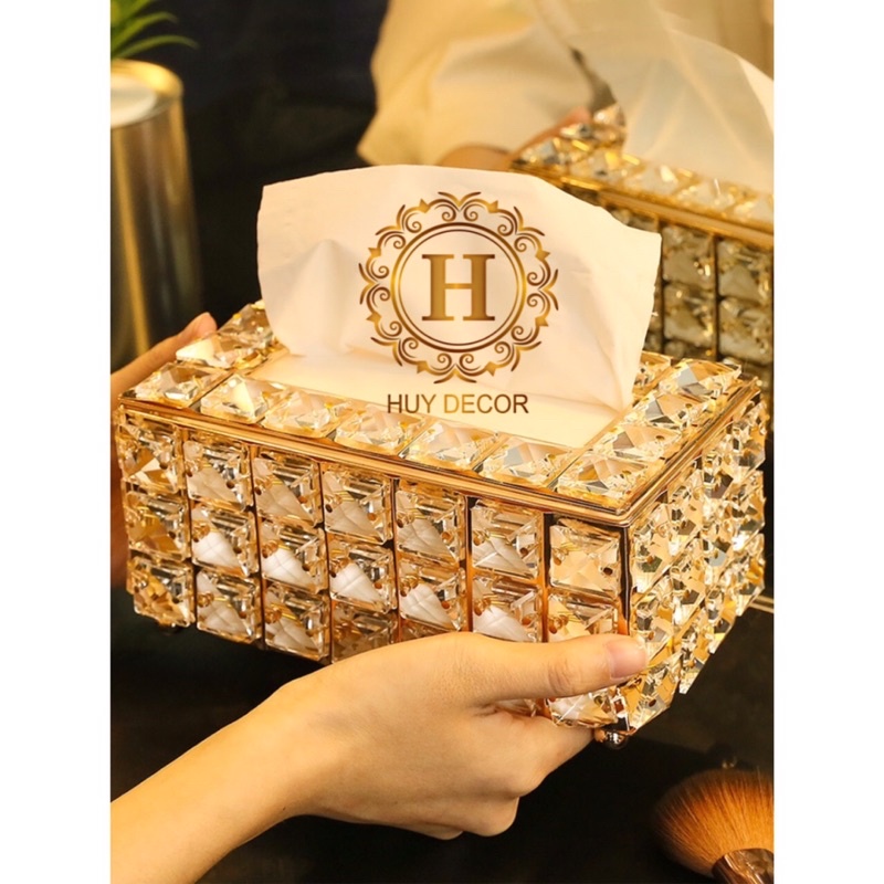Hộp đựng khăn giấy đính đá phale Huydecor8888