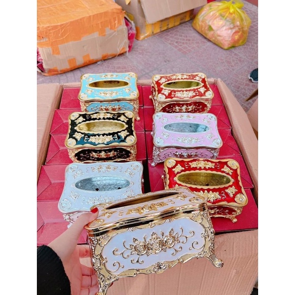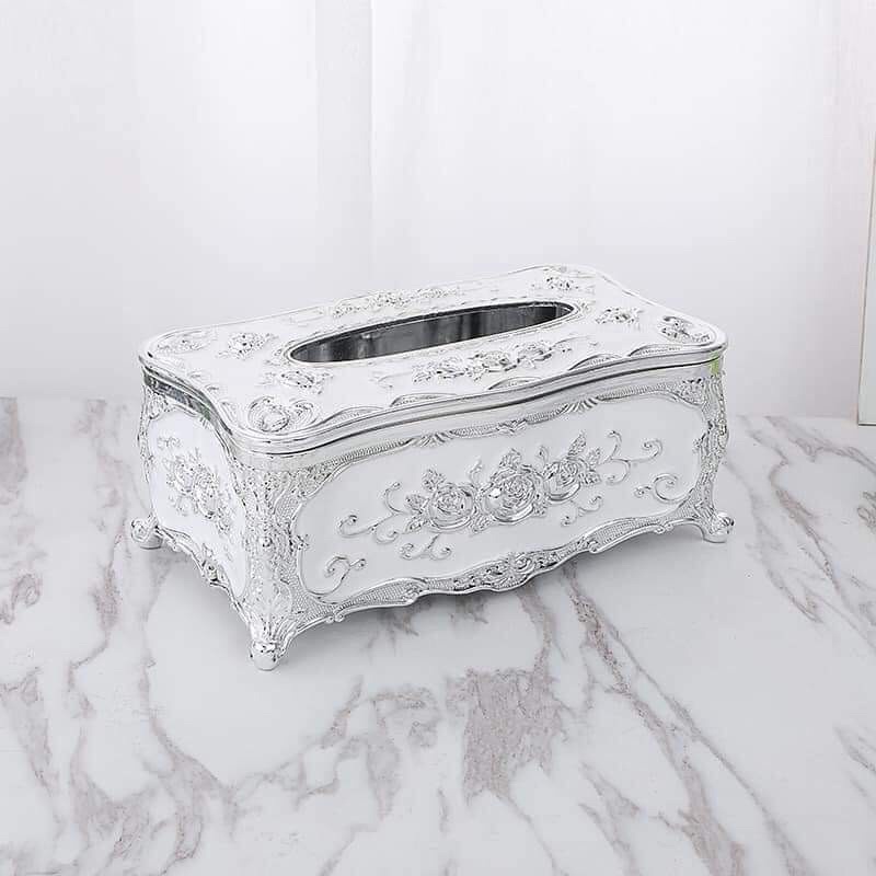 Hộp đựng giấy ăn được trang trí hoa văn tinh xảo mang tính nghệ thuật cao mang phong cách cổ điển Châu Âu.