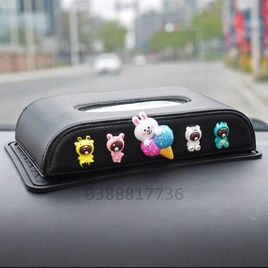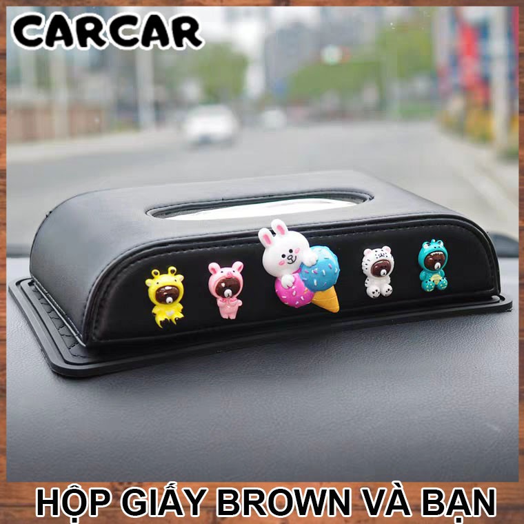 Hộp đựng khăn giấy dùng trên ô tô hoạ tiết Brown và bạn