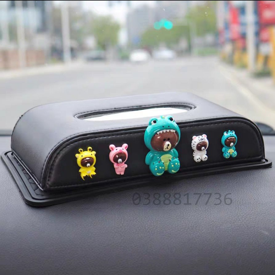 Sản phẩm: Hộp đựng khăn giấy dùng trên ô tô hoạ tiết Brown và bạnChất liệu: PU