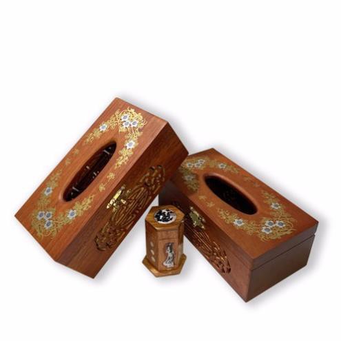 Các vị khách đến nhà chỉ cần nhìn vào hộp giấy đã thấy được sự chu đáo đến từng chi tiết của gia chủ . Bởi chiếc hộp gỗ mỹ nghệ khảm trai không chỉ là một đồ dùng mà còn là một vật trang trí cho ngôi nhà.