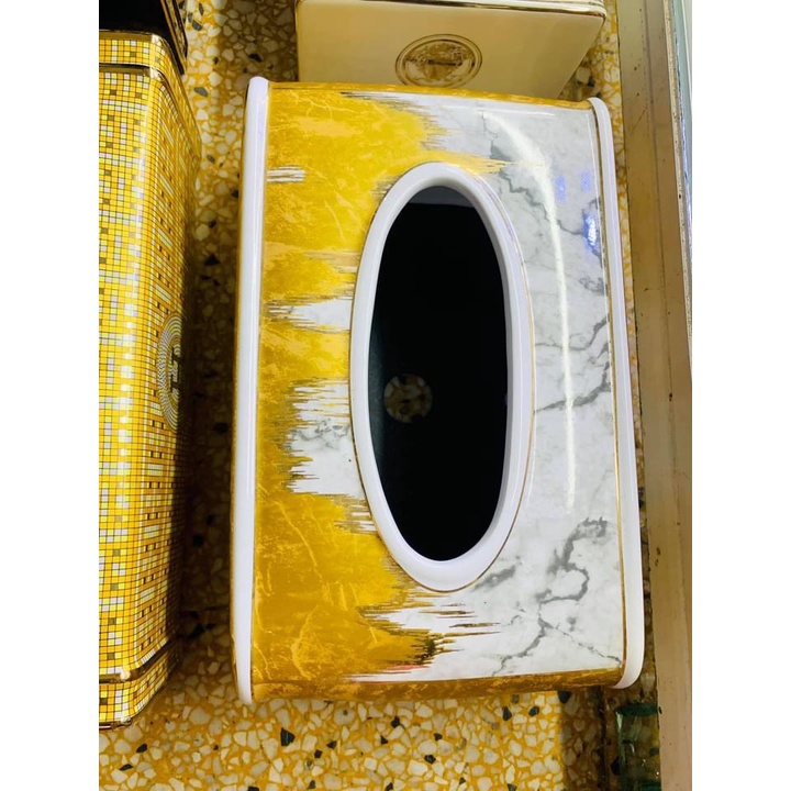 Nhà cửa & Đời sống > Sắp xếp nhà cửa > Hộp khăn giấy || HỘP ĐỰNG KHĂN GIẤY, GIẤY ĂN BẰNG GỐM SỨ CÁO CẤP PHONG CÁCH CHÂU ÂU MÀU VÀNG RẠNCòn hàng