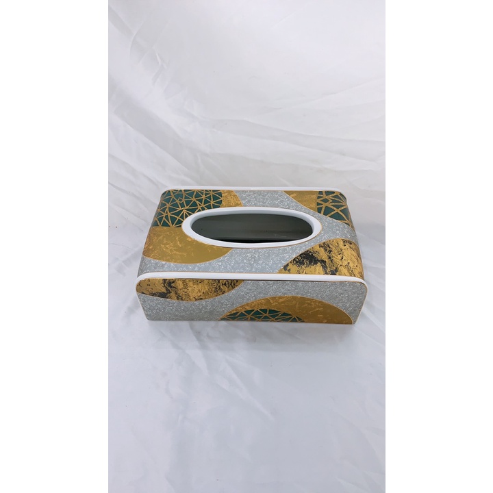 HỘP ĐỰNG KHĂN GIẤY, GIẤY ĂN BẰNG GỐM SỨ CÁO CẤP PHONG CÁCH CHÂU ÂU MÀU VÀNG RẠN