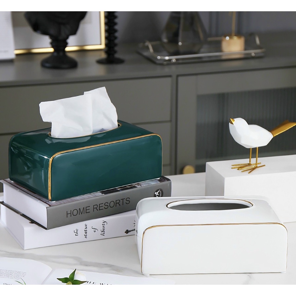 Nhà cửa & Đời sống > Sắp xếp nhà cửa > Hộp khăn giấy || HỘP ĐỰNG KHĂN GIẤY GIẤY ĂN BẰNG GỐM SỨ CÁO CẤP MÀU XANH NGỌC VIỀN VÀNGCòn hàng