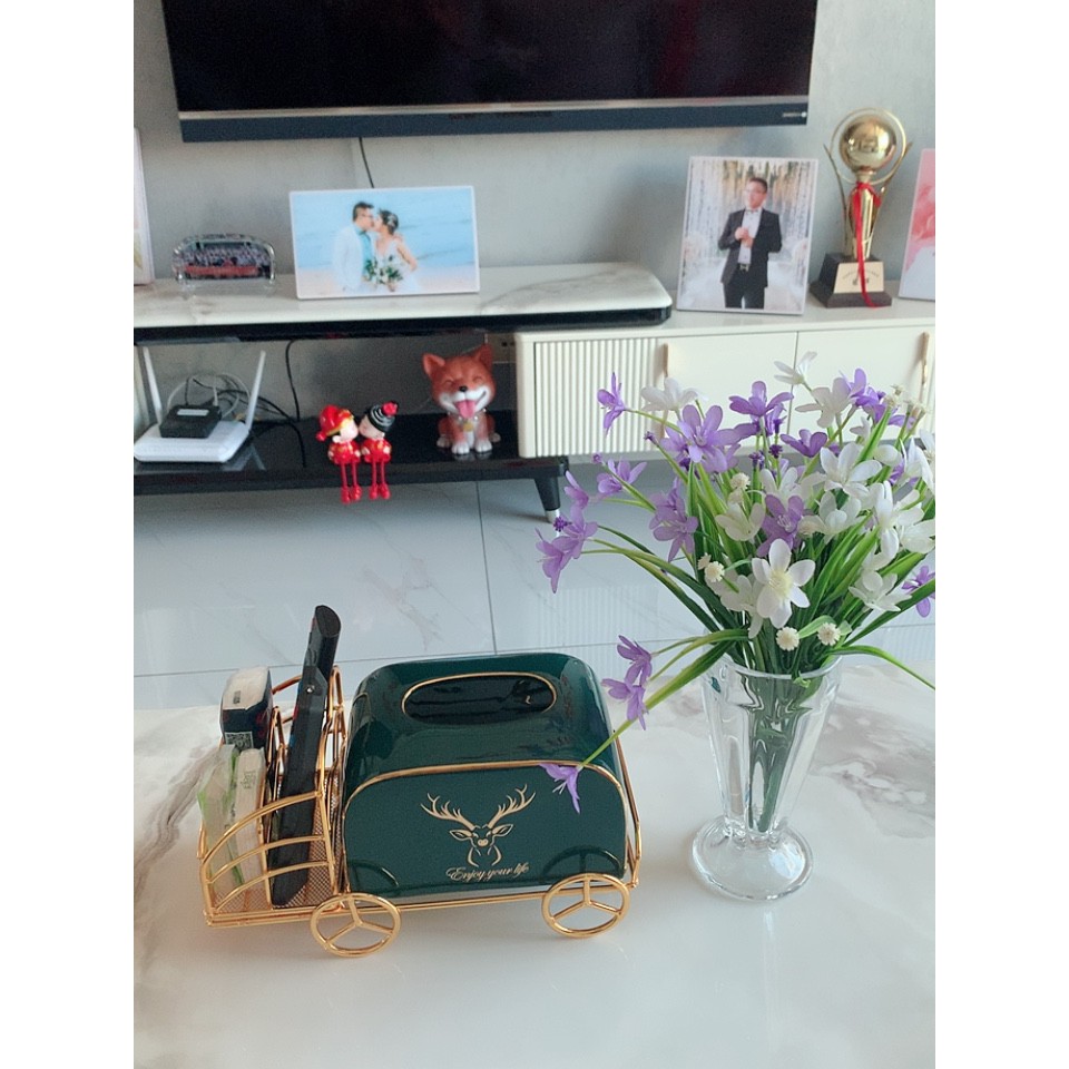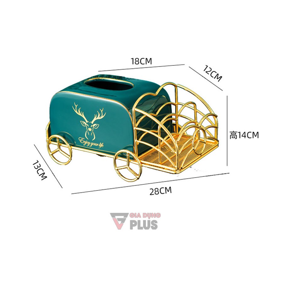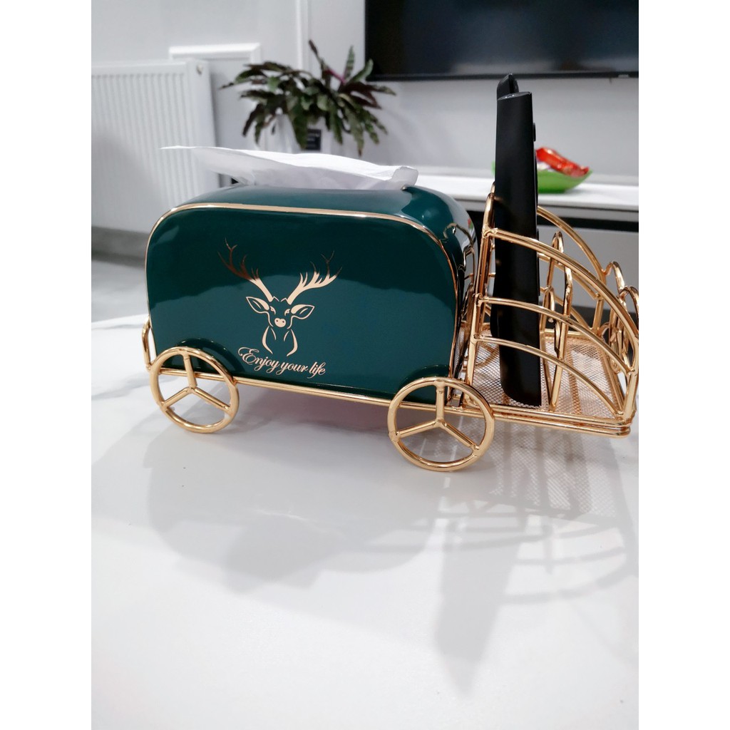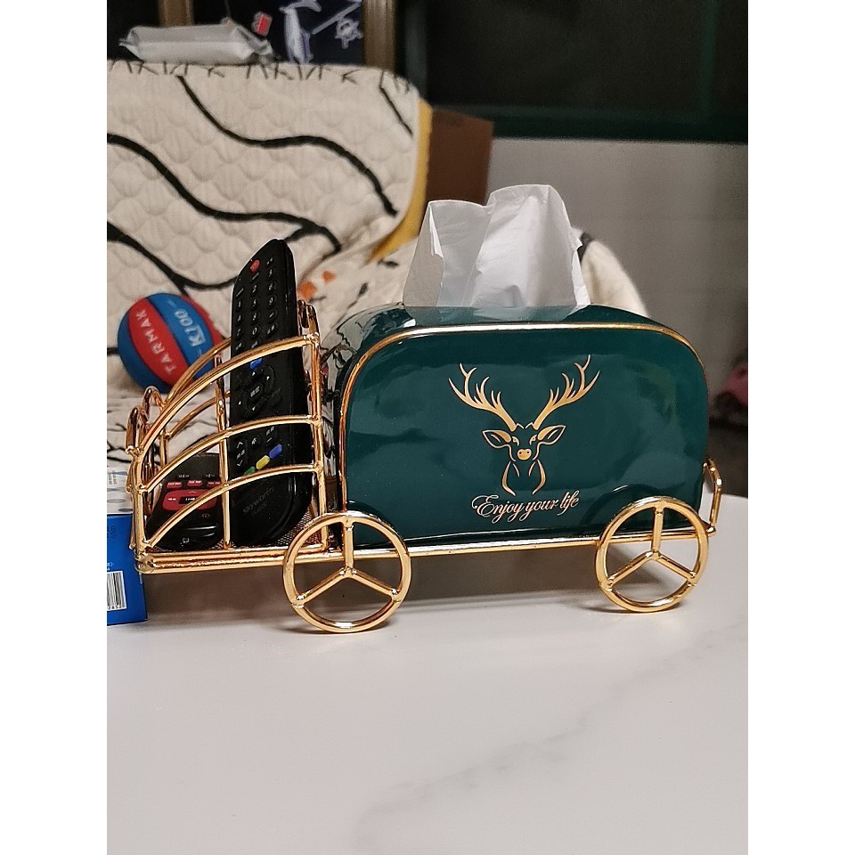 - Hộp đựng giấy bằng sứ xanh ngọc lục bảo kèm kệ mạ vàng để đựng điều khiển, remote đặt bàn đa năng được trang trí bằng biểu tượng nai sừng tấm - quý tộc theo phong cách Bắc Âu.- Bộ sản phẩm gồm 1 ống đựng giấy sứ & 1 kệ mạ vàng như ảnh.