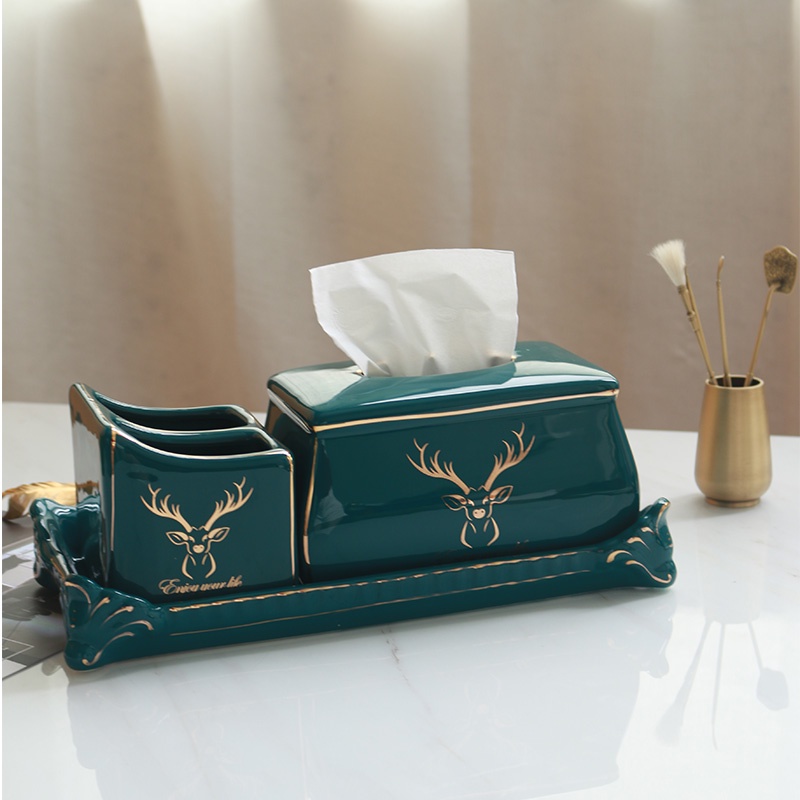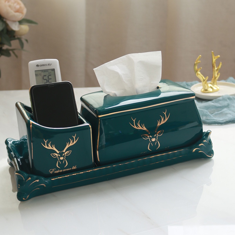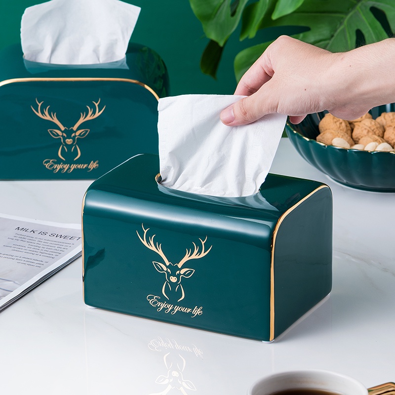 Nhà cửa & Đời sống > Sắp xếp nhà cửa > Hộp khăn giấy || Hộp Đựng Khăn Giấy Gốm Sứ Xanh Ngọc Lục Bảo | Kèm Kệ Mạ Vàng Đựng Điều Khiển Đa Năng | Phong Cách Bắc ÂuCòn hàng