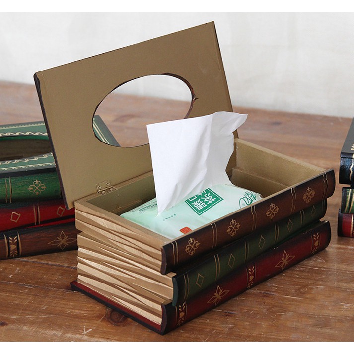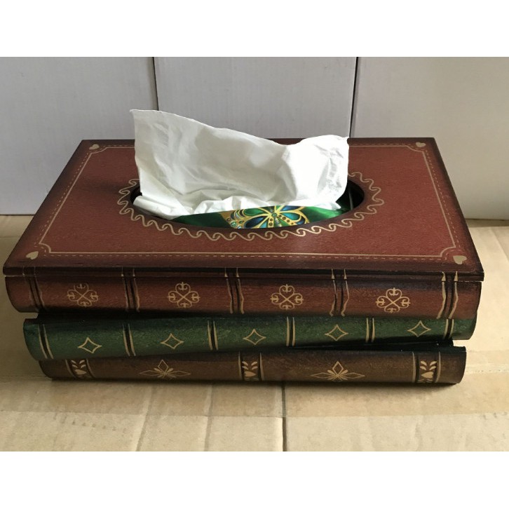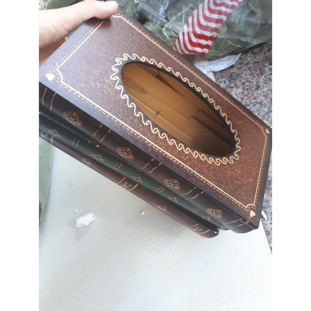 * Hộp đựng khăn giấy có hình cuốn sách thật đặc biệt và phong cách* Hộp làm từ chất liệu gỗ, chế tạo thủ công, sơn phun màu giả sách cổ điển.
