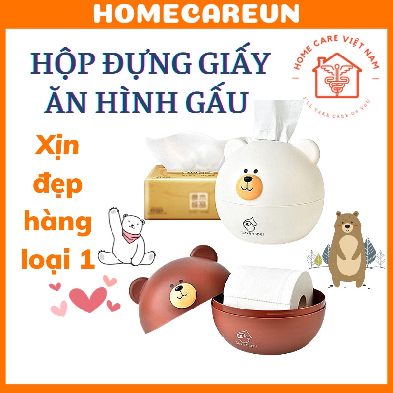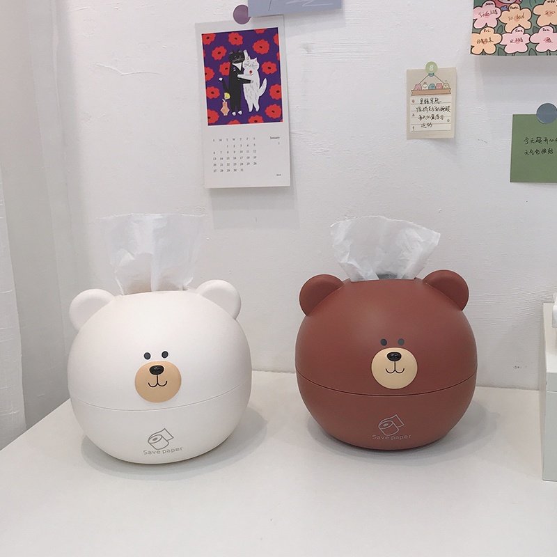Hộp đựng khăn giấy hình gấu nâu , trắng dễ thương