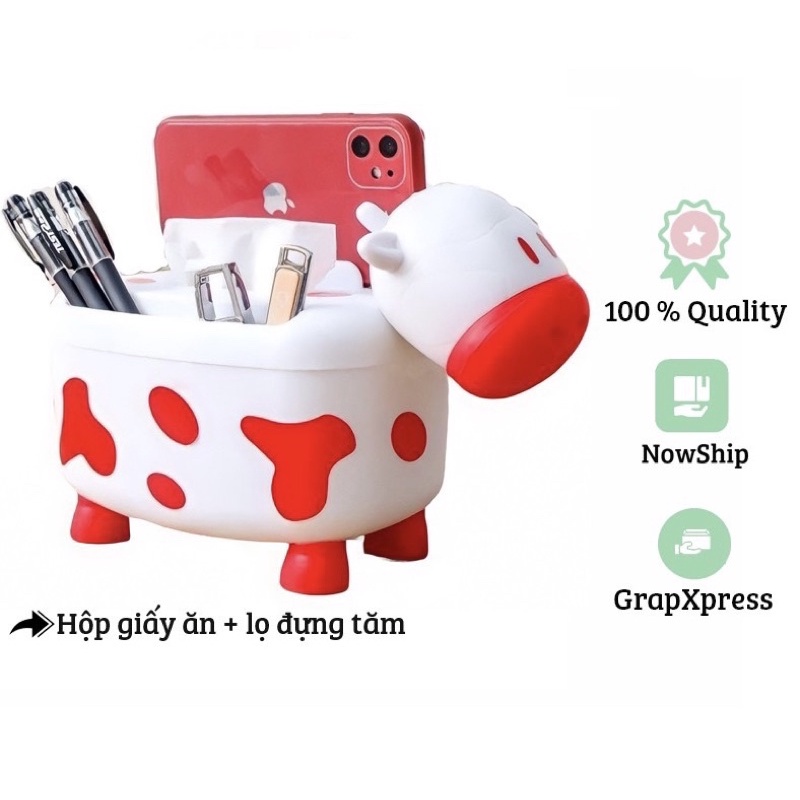 hộp đựng khăn giấy hình trâu ☘️freeship☘️ hộp ➕gác điện thoại➕cắm viết tiện lợi