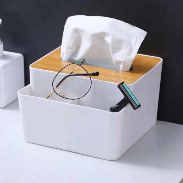 Nhà cửa & Đời sống > Sắp xếp nhà cửa > Hộp khăn giấy || Hộp Đựng Khăn Giấy Hộp Đựng Giấy Ăn Nắp Gỗ Có Ngăn Để Đồ Đa Năng BEECOOKCòn hàng