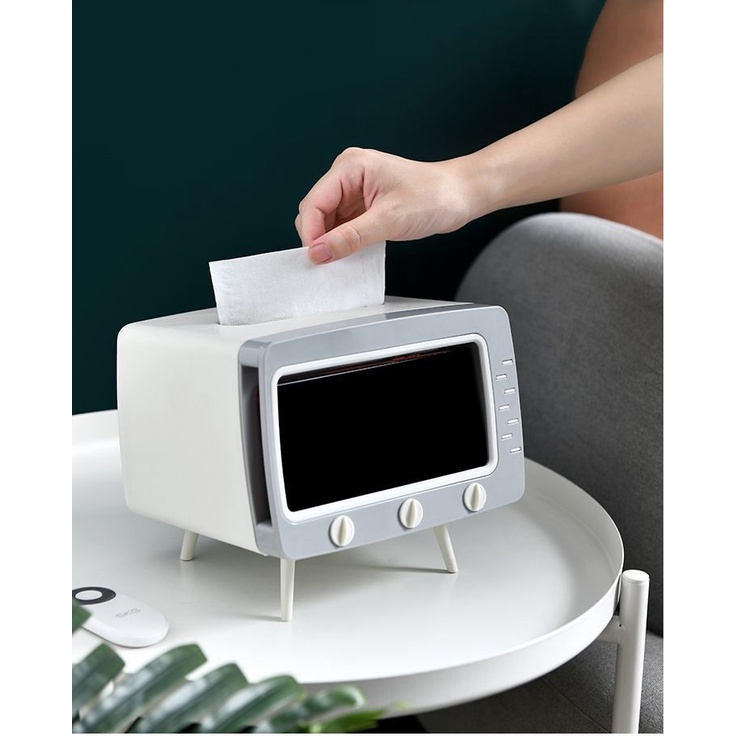 Giới thiệu Hộp Đựng Khăn Giấy Hộp Đựng Giấy Ăn Hình Tivi Kiêm Giá Để Điện Thoại- Hàng chất lượng cao