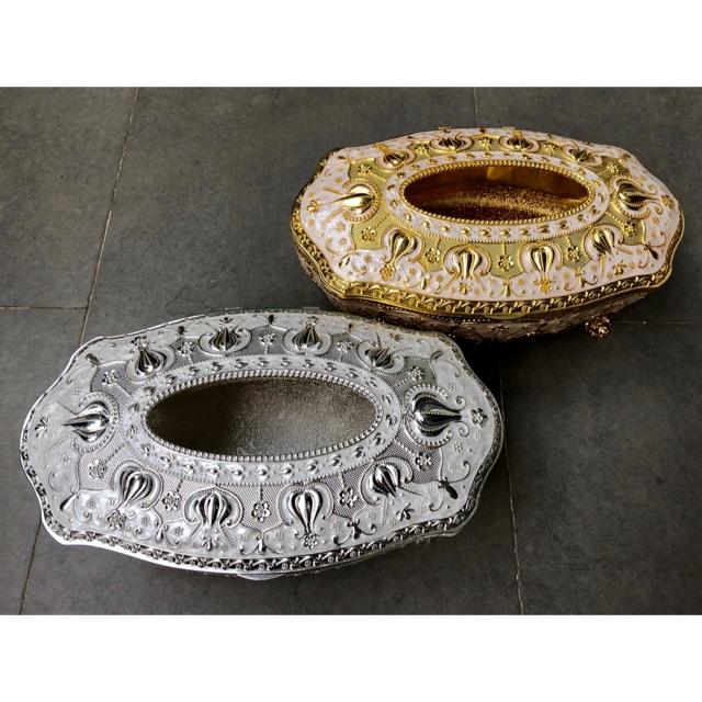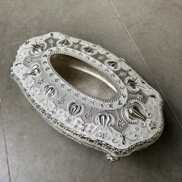 Nhà cửa & Đời sống > Sắp xếp nhà cửa > Hộp khăn giấy || Hộp đựng khăn giấy Hợp kim Ovan Mạ vàng bạc Hoàng gia Thái LanCòn hàng