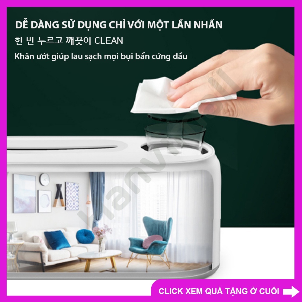- Thiết kế độc đáo, tiện lợi, dễ dàng làm ướt khăn giấy khô chỉ bằng 1 lần chạm duy nhất