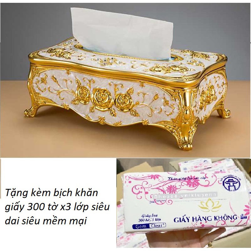 Hộp đựng khăn giấy kiểu hoàng gia+ tặng kèm khăn giấy rút 300 tờ