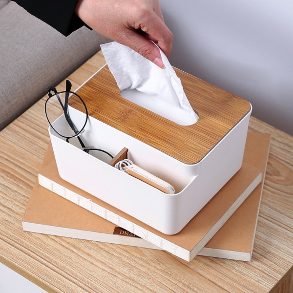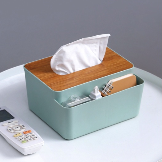 ➖ Hộp đựng khăn giấy bằng nhựa chữ nhật nắp gỗ phù hợp sử dụng trong gia đình, khách sạn ...