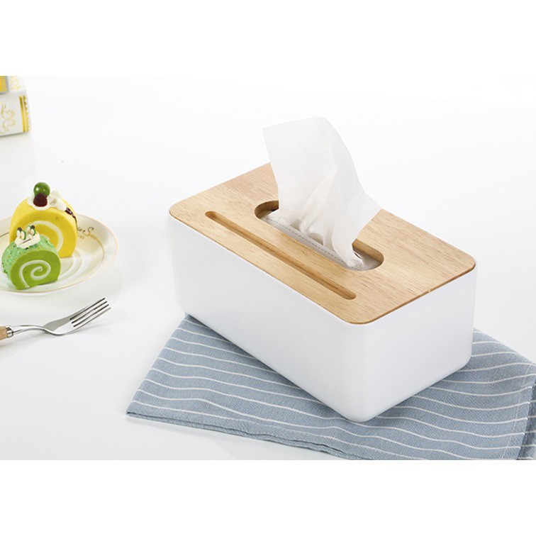 - Hộp đựng khăn giấy bằng nhựa chữ nhật nắp gỗ phù hợp sử dụng trong gia đình, khách sạn ...
