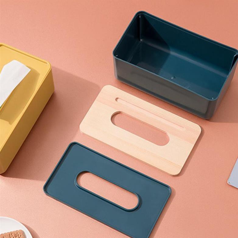 - Hộp đựng khăn giấy bằng nhựa chữ nhật nắp gỗ phù hợp sử dụng trong gia đình, khách sạn ...