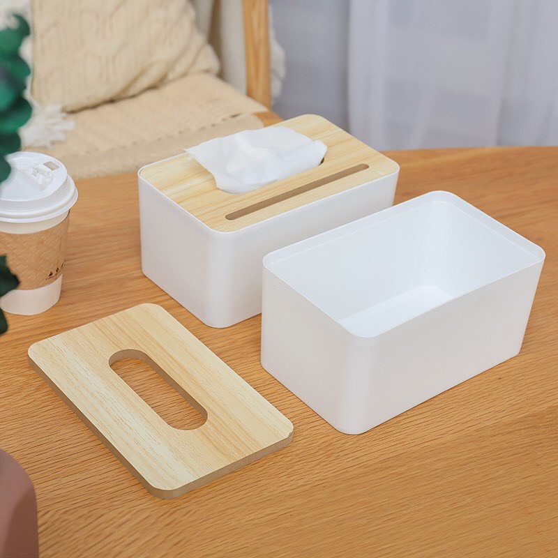 - Hộp đựng khăn giấy bằng nhựa chữ nhật nắp gỗ phù hợp sử dụng trong gia đình, khách sạn ...