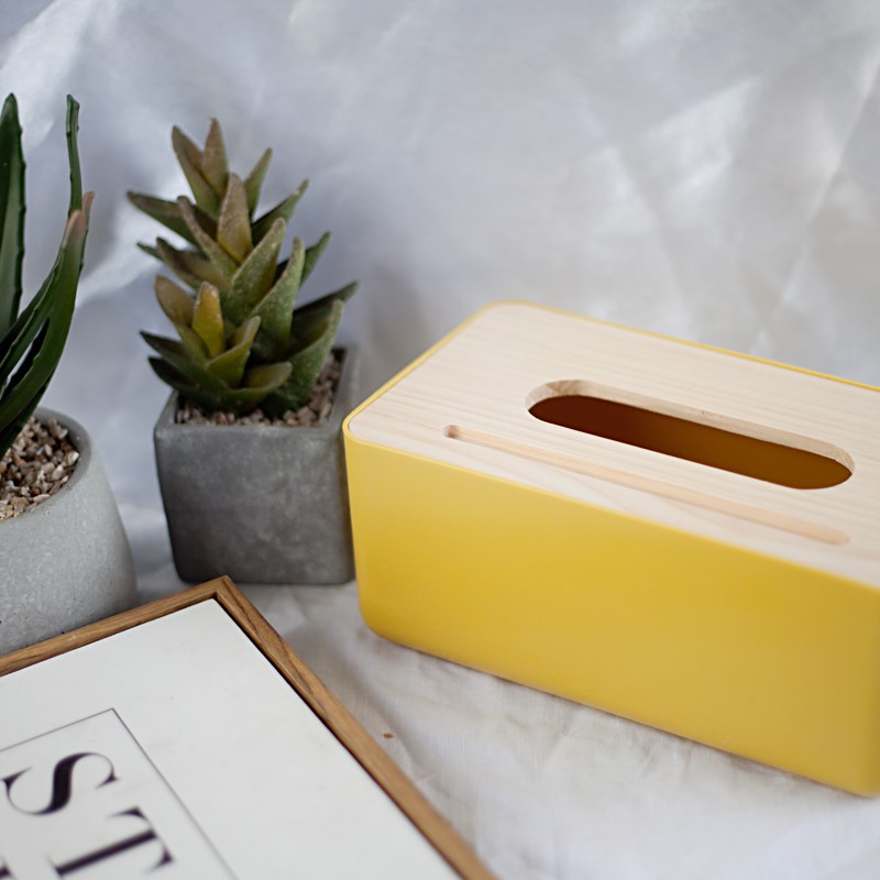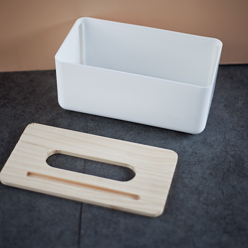 Hộp đựng khăn giấy nắp gỗ phong cách Bắc Âu